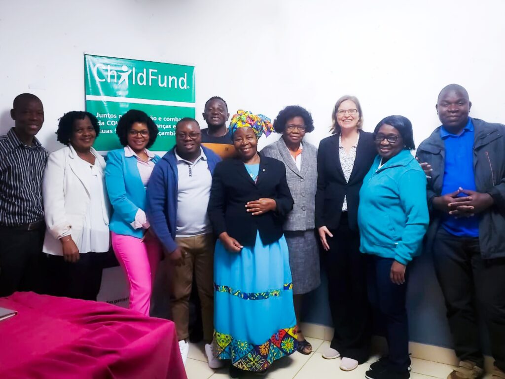 Description: The photo captures representatives from ChildFund and three local partner organizations in Maputo during the Organizational Capacity Assessment (OCA) process. The group includes program staff, organizational leaders, and assessment facilitators standing together after a full day of participatory review and action planning. The image illustrates the inclusive and partnership-driven approach that guided the OCA workshops across Maputo, Inhambane, and Nampula Provinces, reinforcing the central role local organizations play in delivering community-based programs and advancing child well-being.